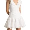 - Taffeta Mini Dress In Dancing With 3/4-Length Balloon Sleeves, Sweetheart Neckline, Elasticized Cuffs, Side Seam Pockets, Tie Straps At Waist, And Shirred Waist