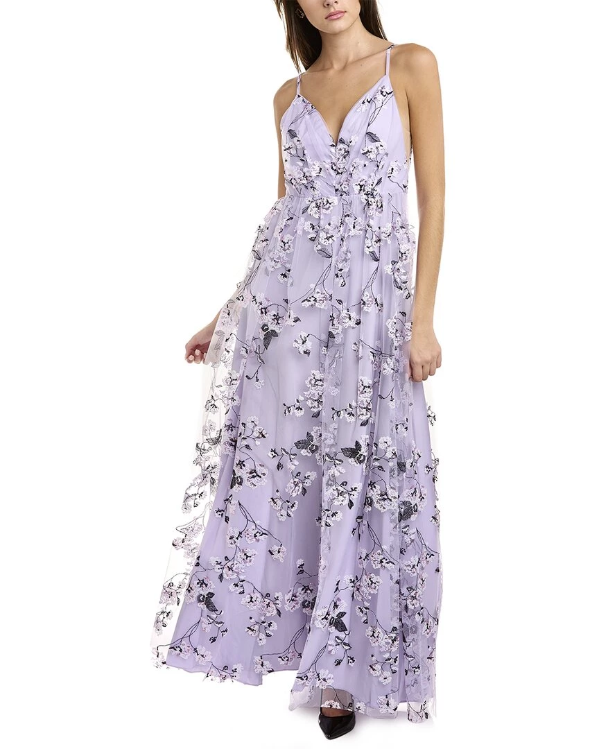 - Tulle Maxi Gown In Lavender With Embroidered And Sequin Detailing And Empire-Waist