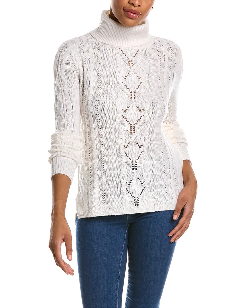 - Design Details – Cable Knit, Turtleneck, Ribbed Trim And Side Slits At Hem